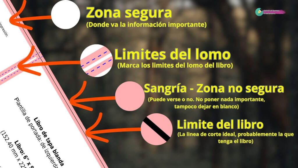 Tener la plantilla correcta es solo el primer paso: también es clave diseñar respetando sus márgenes, sangrados y áreas seguras. Amazon KDP define distintas zonas en la plantilla, y cada una tiene un propósito específico: