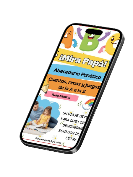 ¡Mira papá! Abecedario fonético de Yudy Medina es una propuesta educativa innovadora que transforma el aprendizaje del abecedario en una experiencia de estimulación temprana consciente, diseñada para fortalecer las bases del lenguaje desde los primeros años de vida. Más que un libro para memorizar letras, esta obra introduce a los niños en el mundo de los sonidos, ayudándolos a comprender cómo funciona el lenguaje a través de la relación entre fonema, imagen y significado.